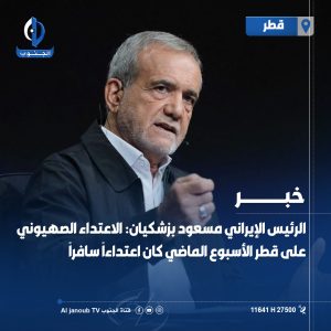 الرئيس الإيراني مسعود #بزشكيان: الاعتداء الصهيوني على #قطر الأسبوع الماضي كان اعتداءاً سافراً